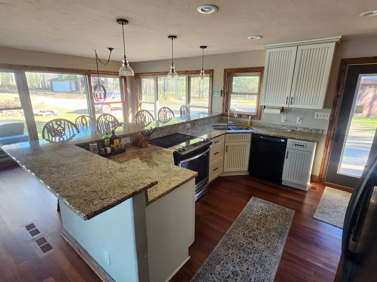 Lily Bay Lodge is a 4-bedroom lakefront retreat on Lake of the Falls in Mercer, WI. Nestled in a peaceful bay at the north end of the lake, it’s perfect for families, groups, and anglers. Fish right off the dock, explore the lake by boat, or swim in the clear Northwoods waters. After a day of adventure, gather by the firepit or relax in the cozy lodge-style home. With space for everyone and endless outdoor activities nearby, Lily Bay Lodge is the ideal place to make lasting memories together.